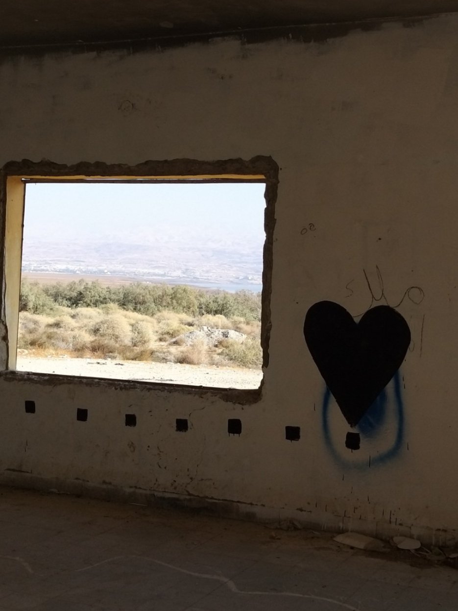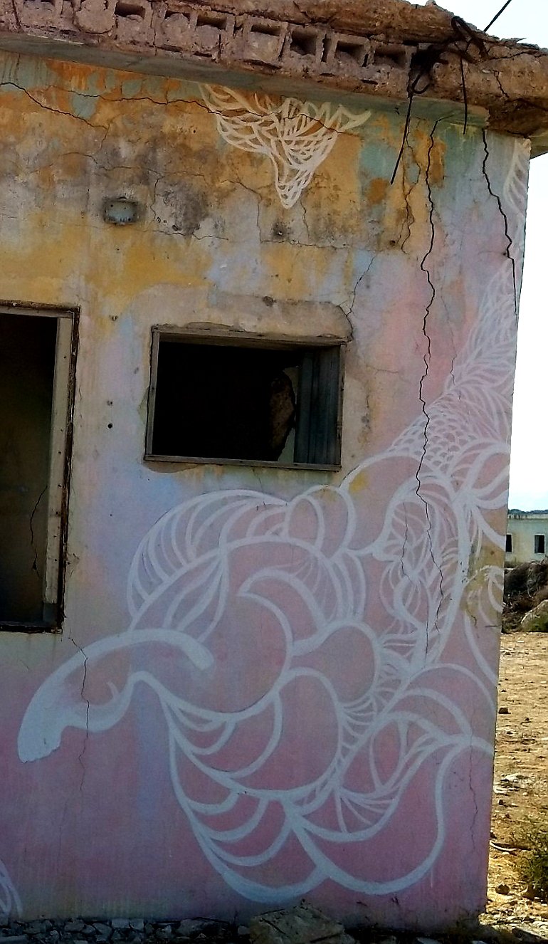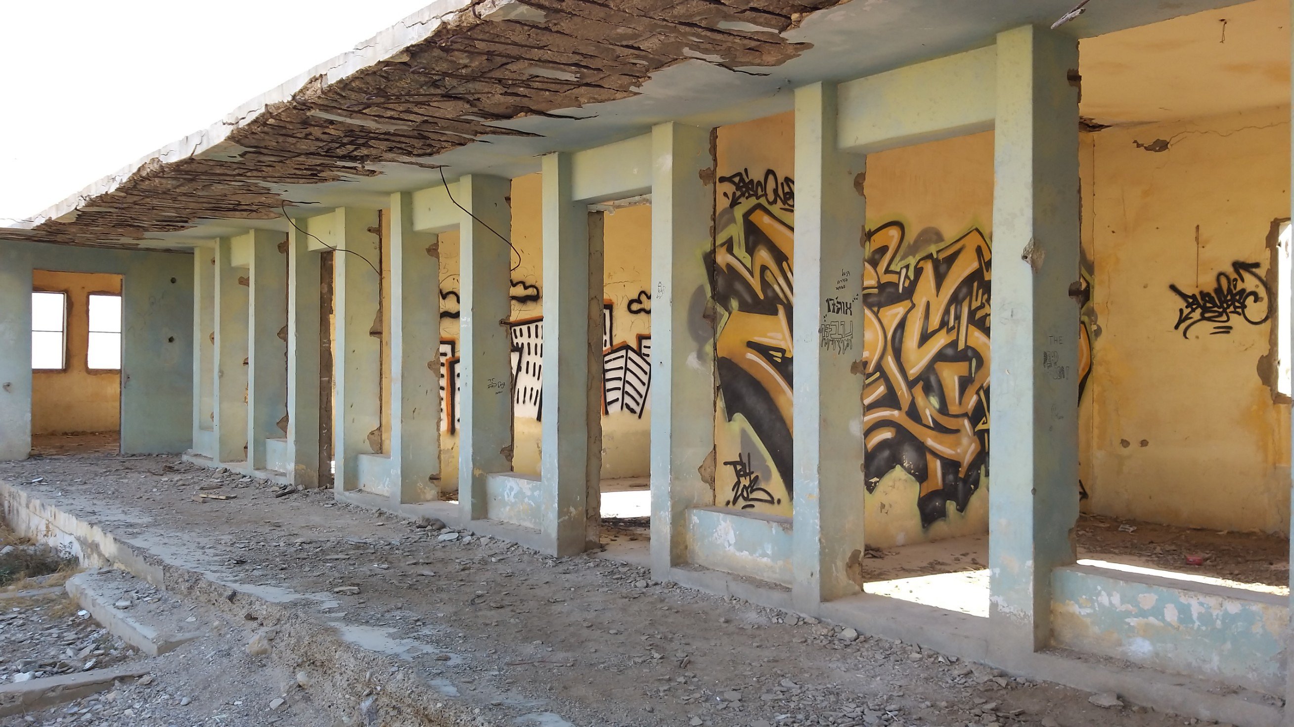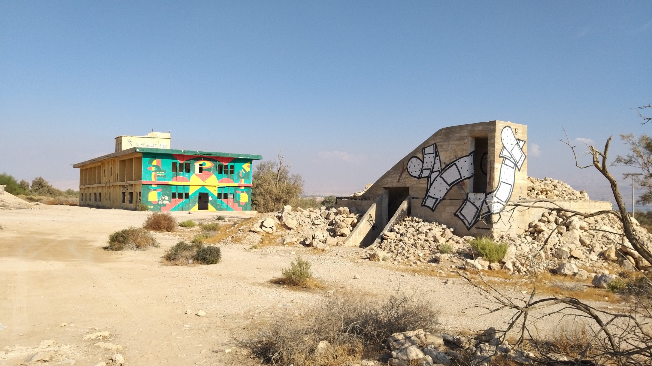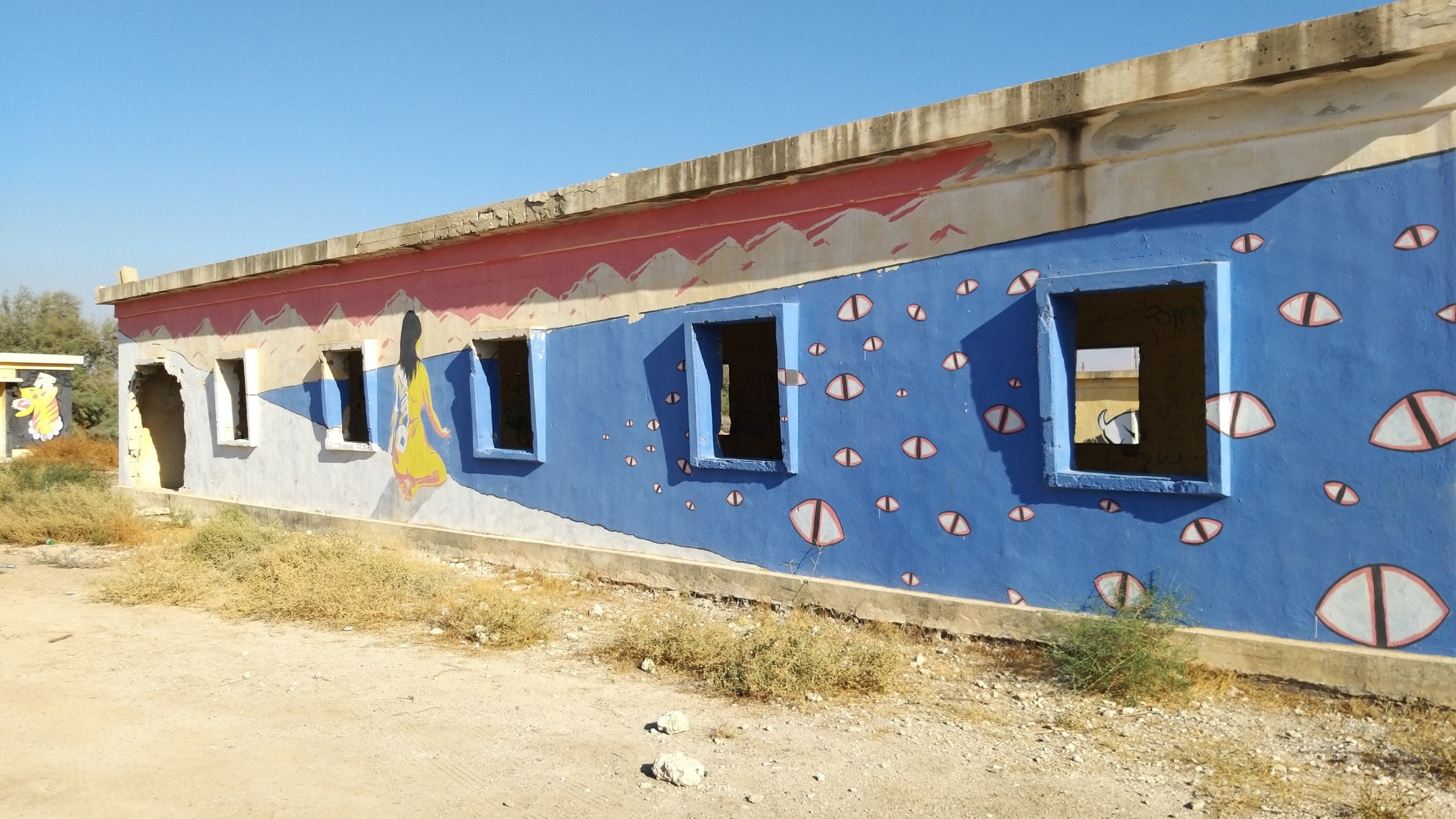 Last weekend my partner and I went to the Dead Sea for a short vacation. On our way back, he spontaneously asked me if I would like to see the paintings in “those old buildings near Kalia Beach” (at the northern end of the Dead Sea). Of course I did! I hadn’t even known about this project.