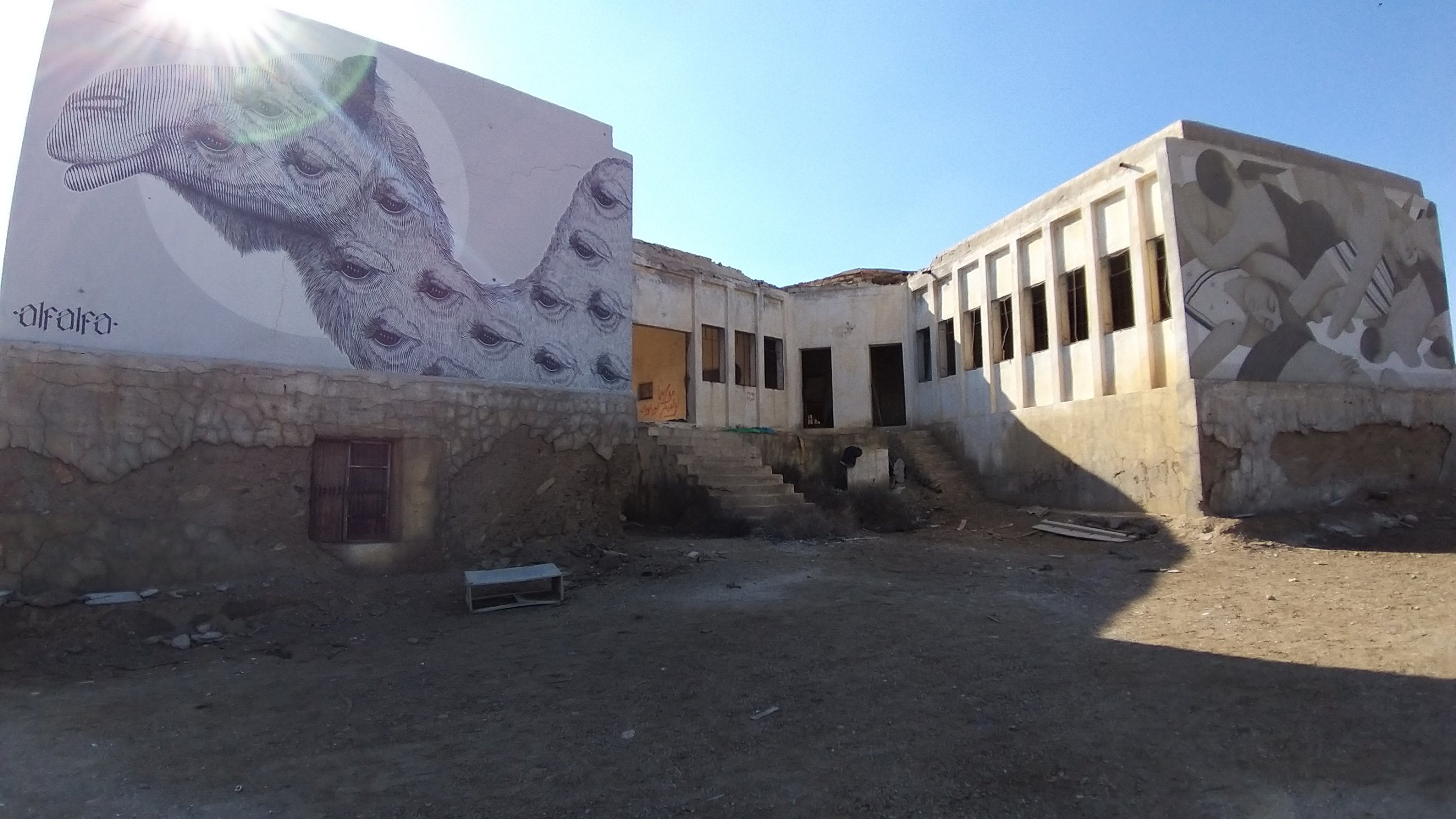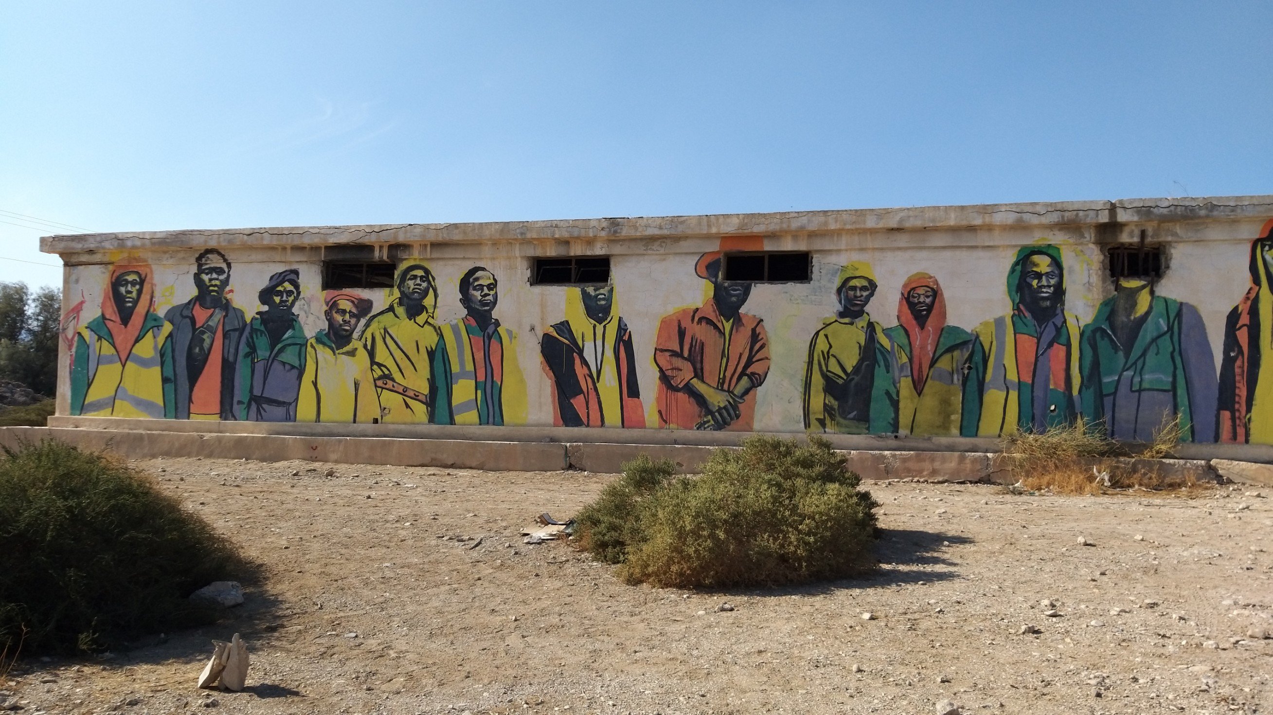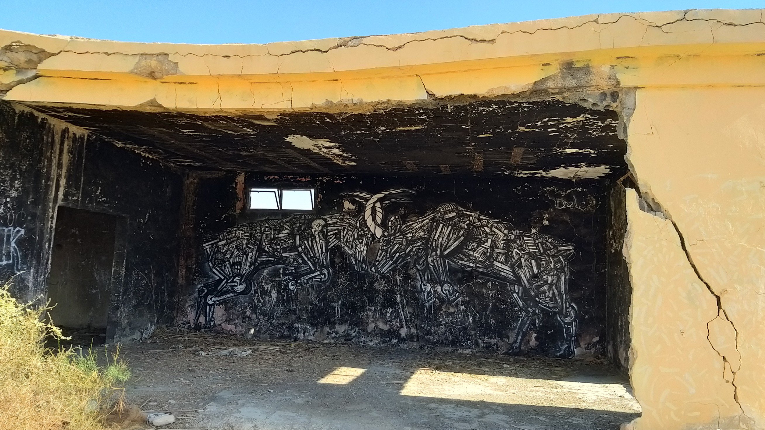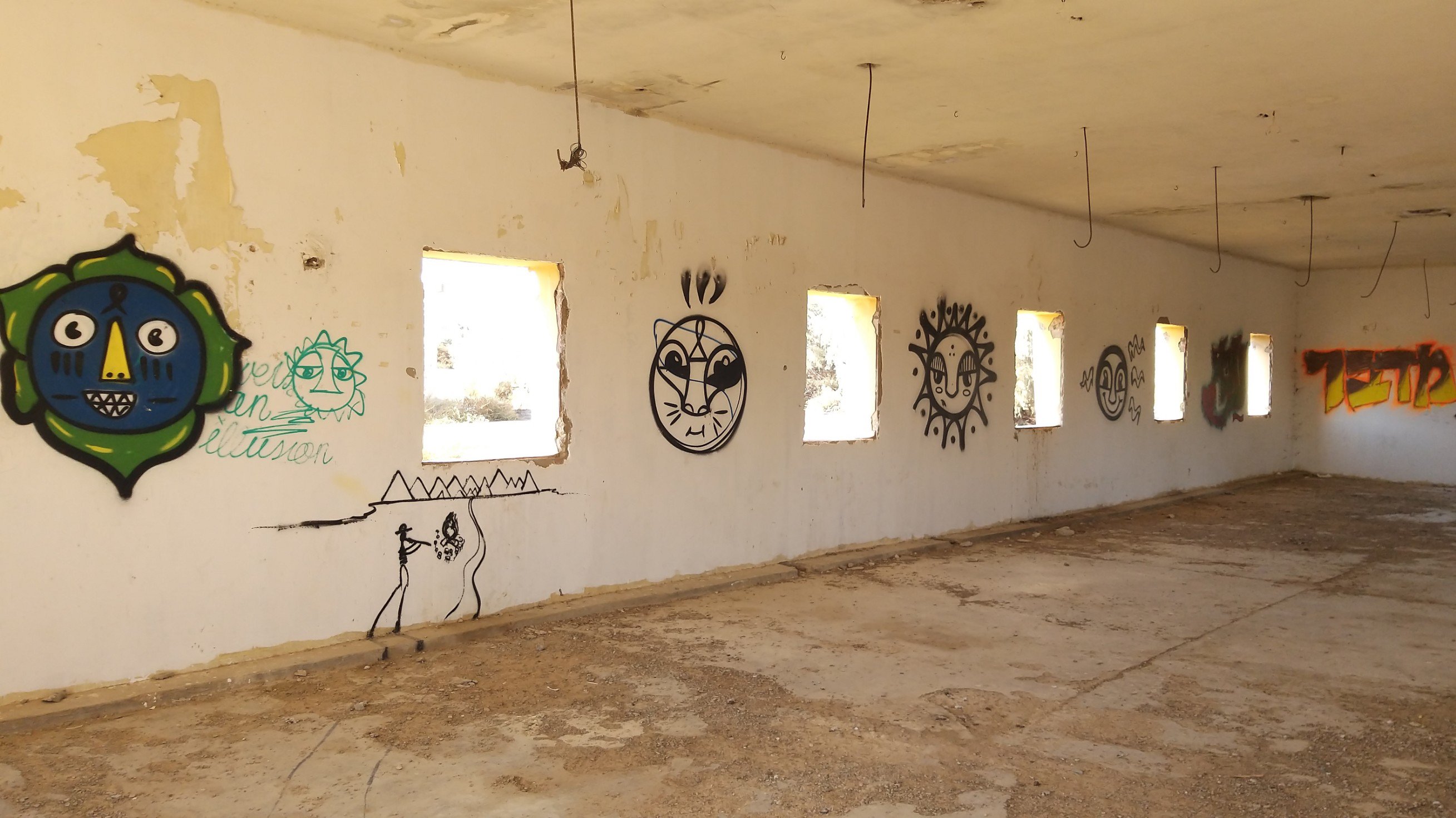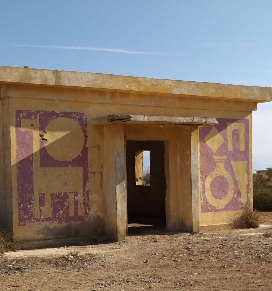 Last weekend my partner and I went to the Dead Sea for a short vacation. On our way back, he spontaneously asked me if I would like to see the paintings in “those old buildings near Kalia Beach” (at the northern end of the Dead Sea). Of course I did! I hadn’t even known about this project.