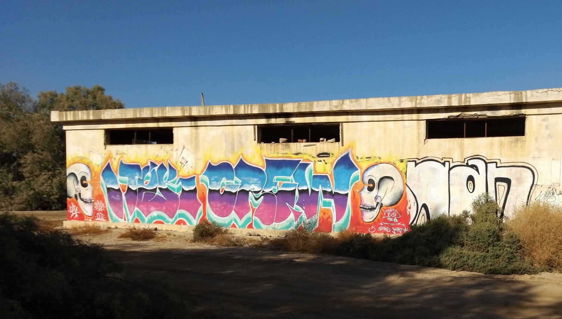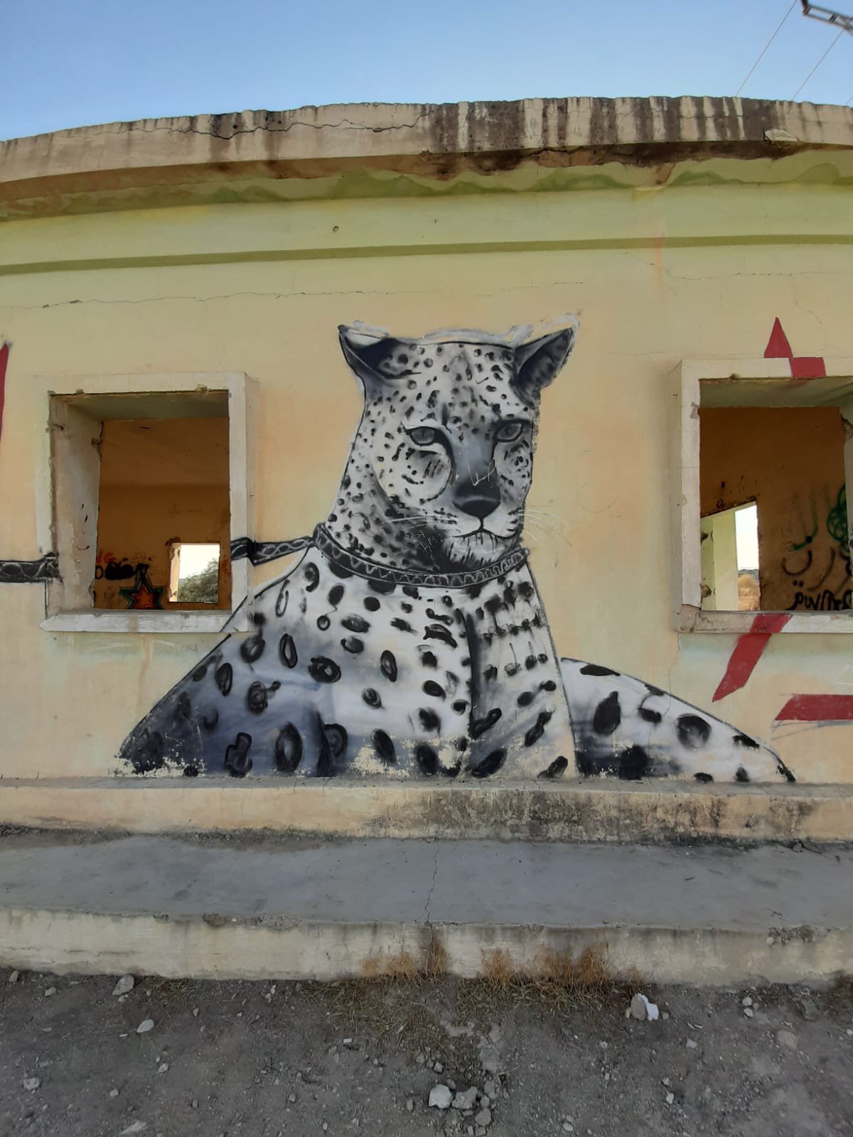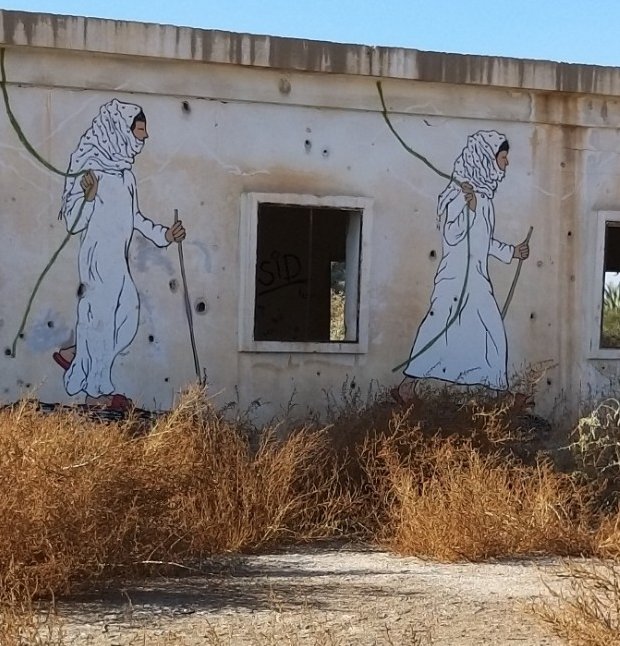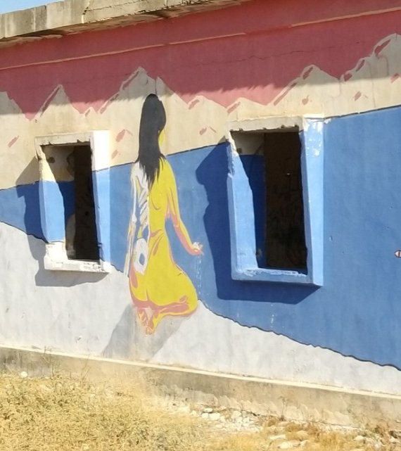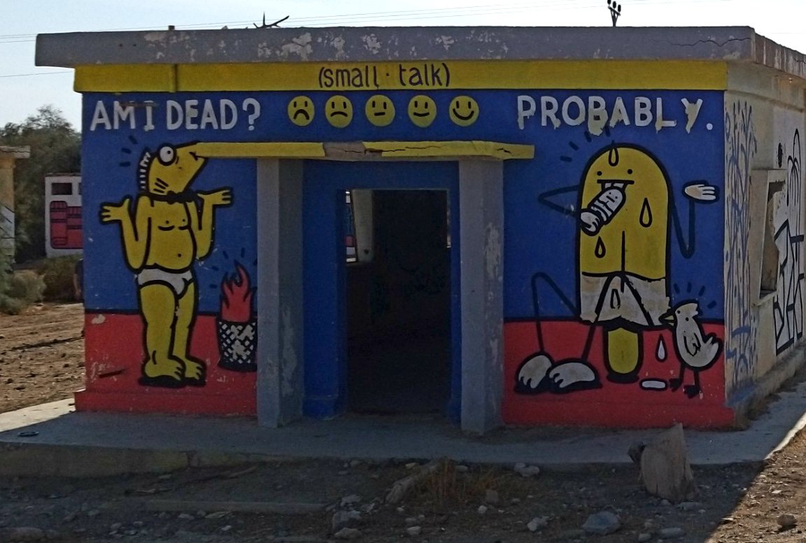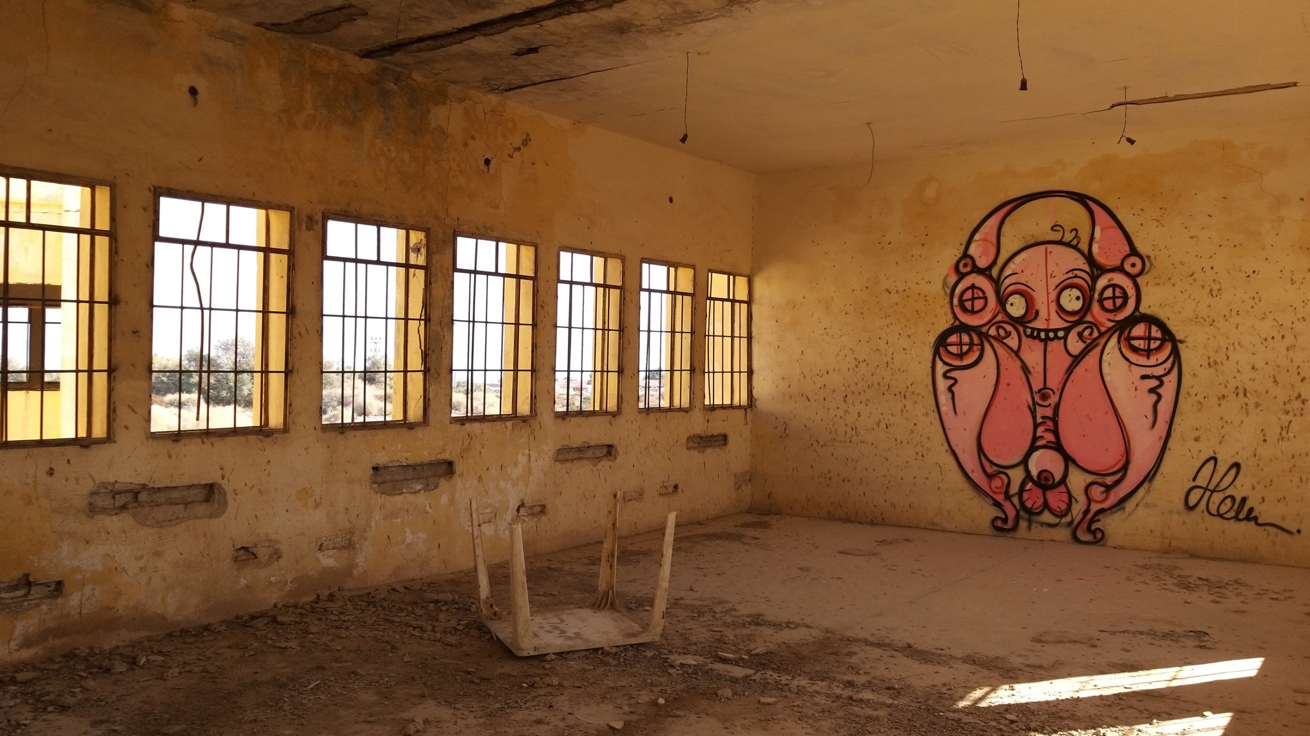 Last weekend my partner and I went to the Dead Sea for a short vacation. On our way back, he spontaneously asked me if I would like to see the paintings in “those old buildings near Kalia Beach” (at the northern end of the Dead Sea). Of course I did! I hadn’t even known about this project.